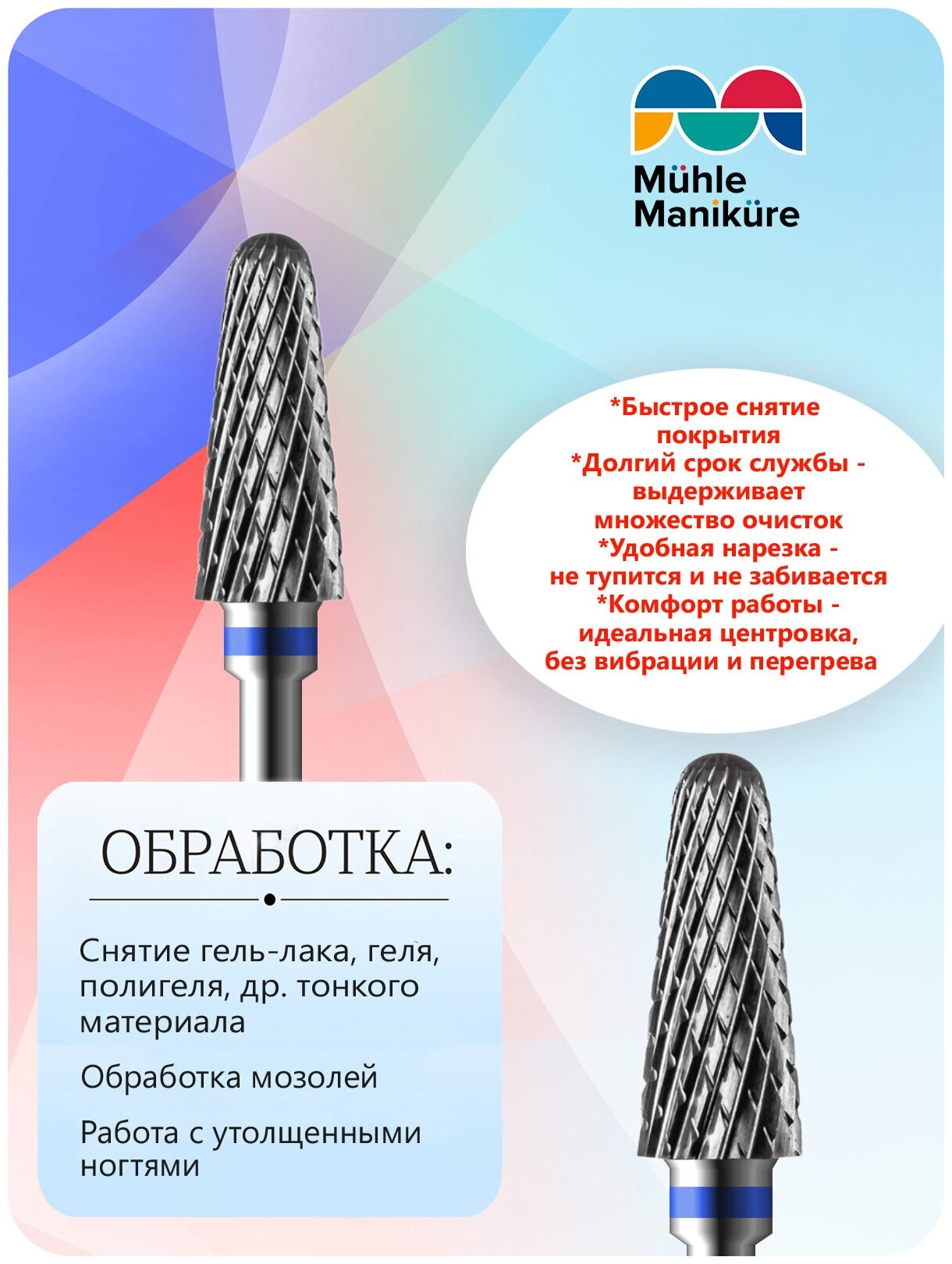 10 цен на Muhle Manikure Фреза для маникюра и педикюра твердосплавная 502 201 190 060 Средняя синяя конус d-6.0