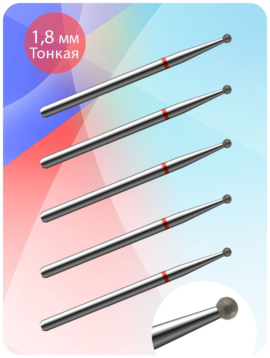 | Дополнительная информация | подходит для шлифовки или деликатной обработки кутикулы, птеригия и боковых валиков, зачистки боковых синусов, обработки околоногтевых и стержневых мозолей; степень обработки: тонкая; форма фрезы: шар, диаметр 1.8 мм |