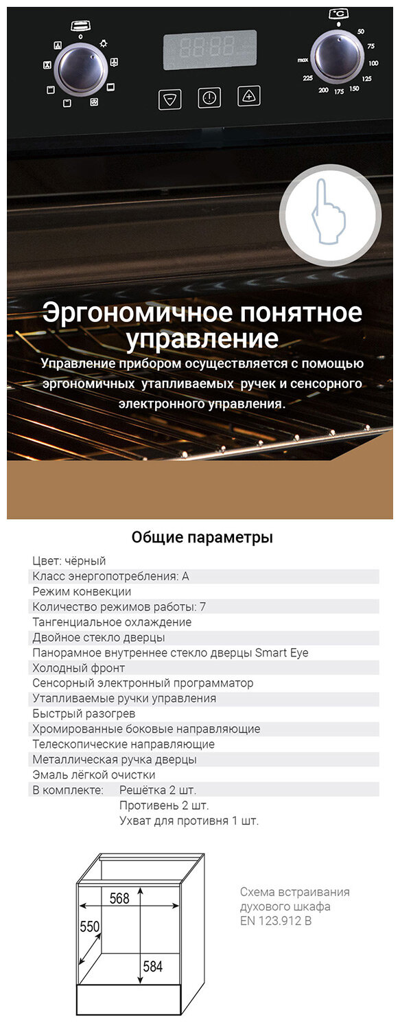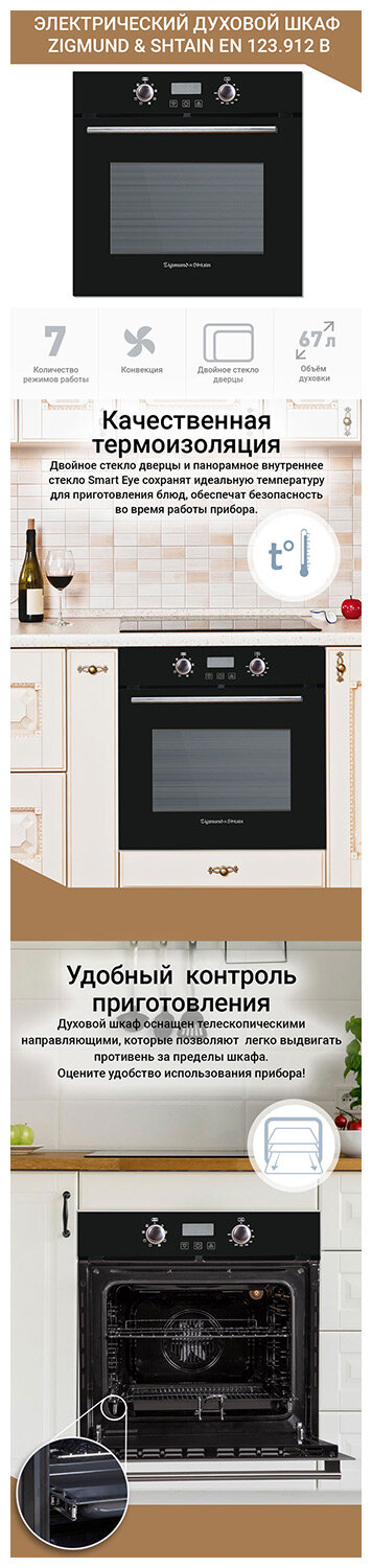 Встраиваемый электрический духовой шкаф Zigmund & Shtain EN 123.912 B информация: