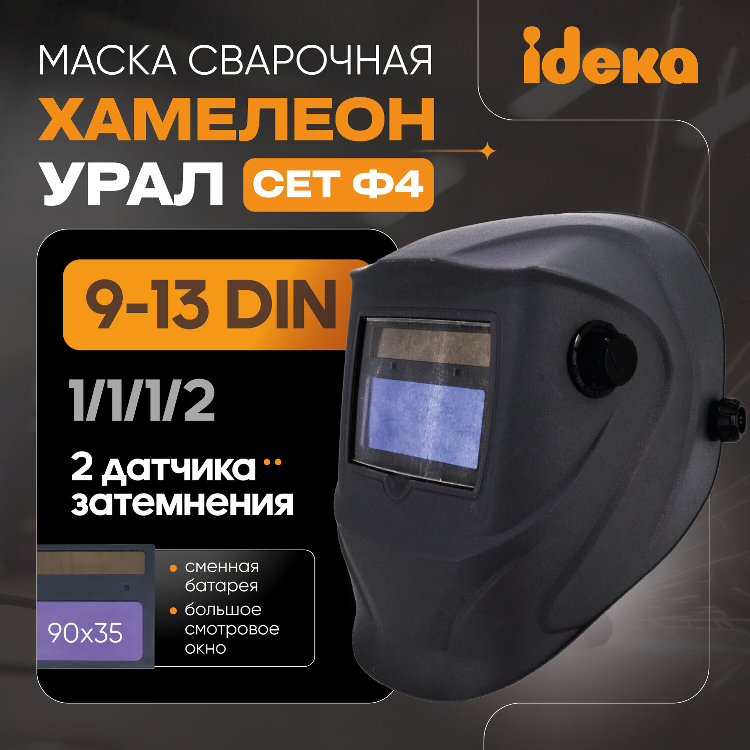 10 цен на Маска сварочная хамелеон CET Ф4 PRO Урал 4/9-13 DIN, плавная регулировка, самозатемняющийся фильт, сменная батарея