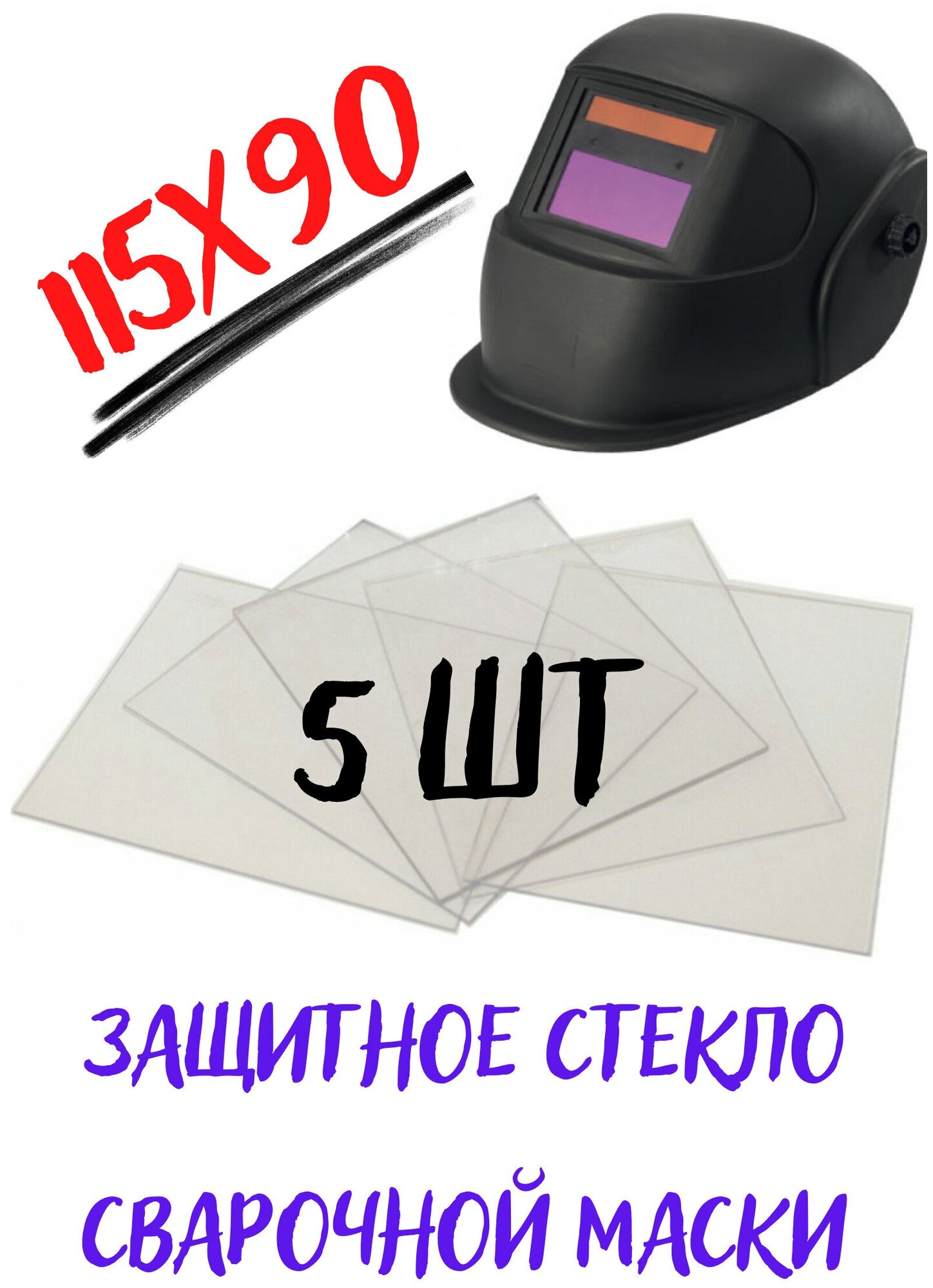 Стекло покровное 115 х 90 для защиты маски сварщика из поликарбоната 0.8 мм ; для защиты светофильтра сварочной маски ; комплект 5 штук информация: