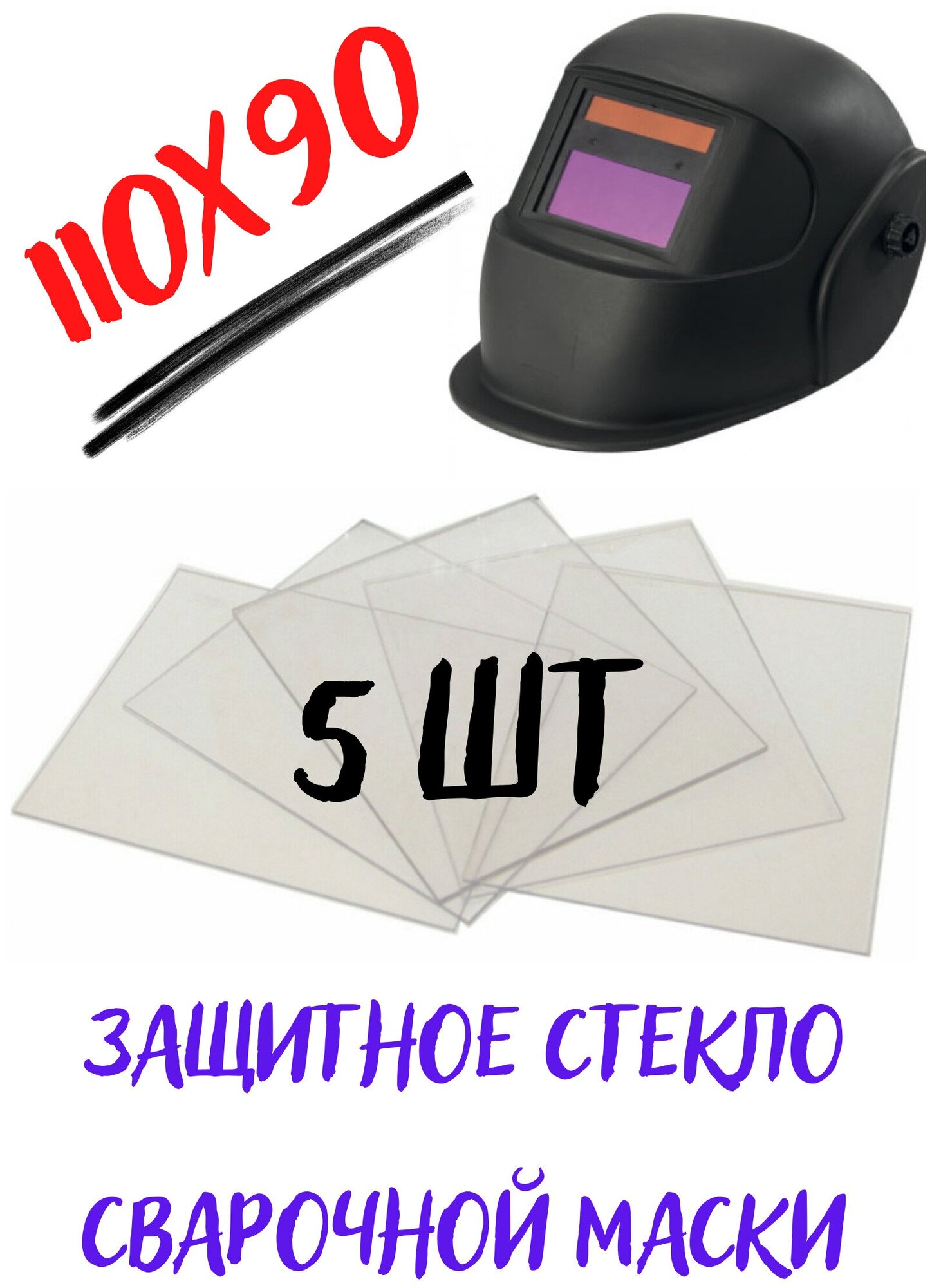 Стекло покровное 110 х 90 для защиты маски сварщика из поликарбоната 0.8 мм ; для защиты светофильтра сварочной маски ; комплект 5 штук информация: