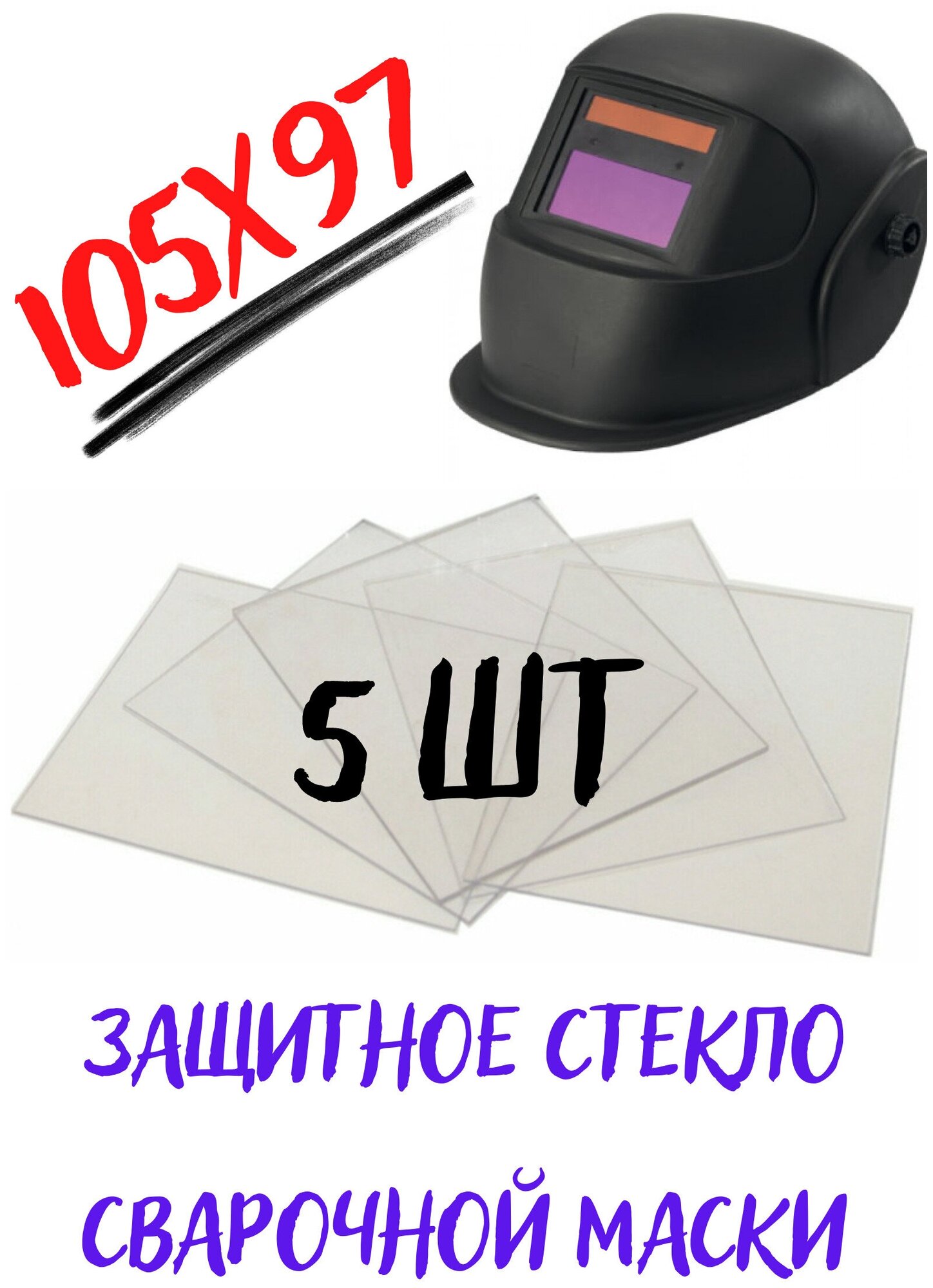 10 цен на Стекло покровное 105 х 97 для защиты маски сварщика из поликарбоната 0.8 мм ; для защиты светофильтра сварочной маски ; комплект 5 штук
