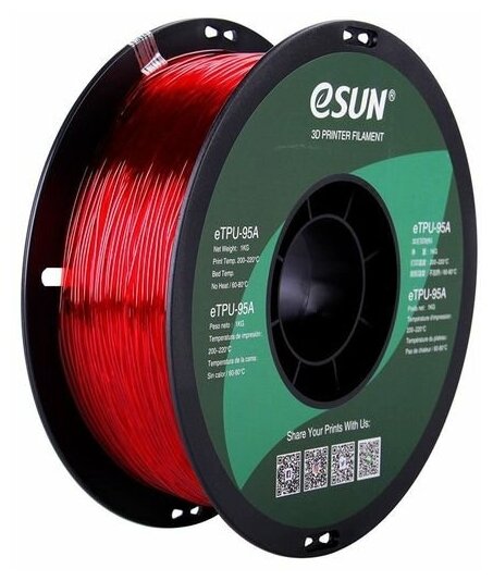 Катушка пластика eTPU-95A Esun 1.75 мм (1 кг) красный информация:
