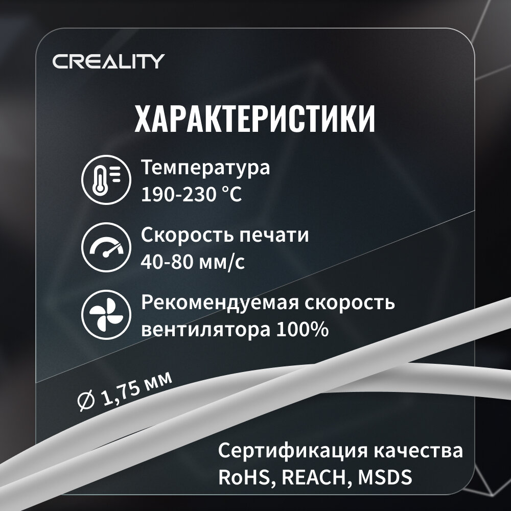 Катушка PLA пластика Creality 1,75 мм 1кг для 3D принтеров, белая информация: