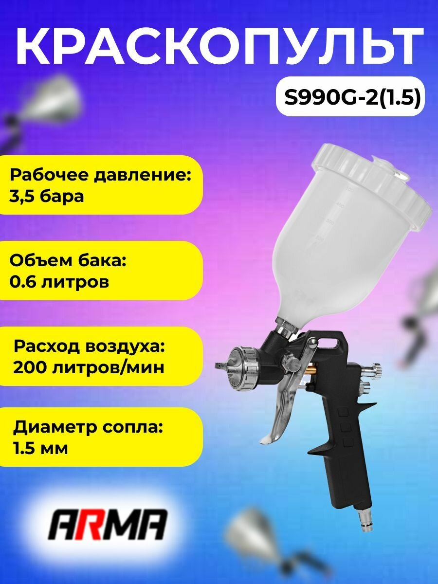 Краскопульт ARMA S990G-2 верхний бак сопло 1,5мм информация: