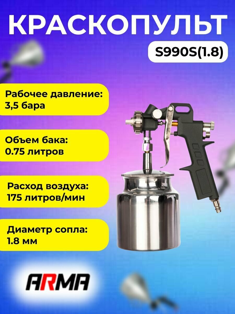 Краскопульт ARMA S990S нижний бак сопло 1,8мм информация: