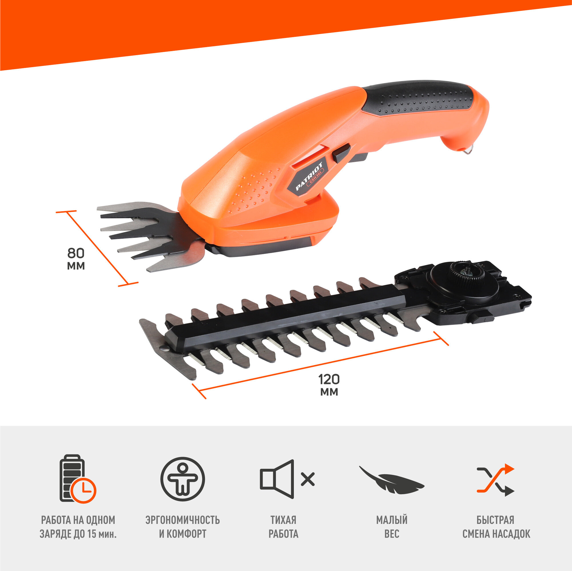 Ножницы-кусторез аккумуляторные PATRIOT CSH 361 3,6В , лазерная заточка, ширина 80мм, макс. 8мм, акб
