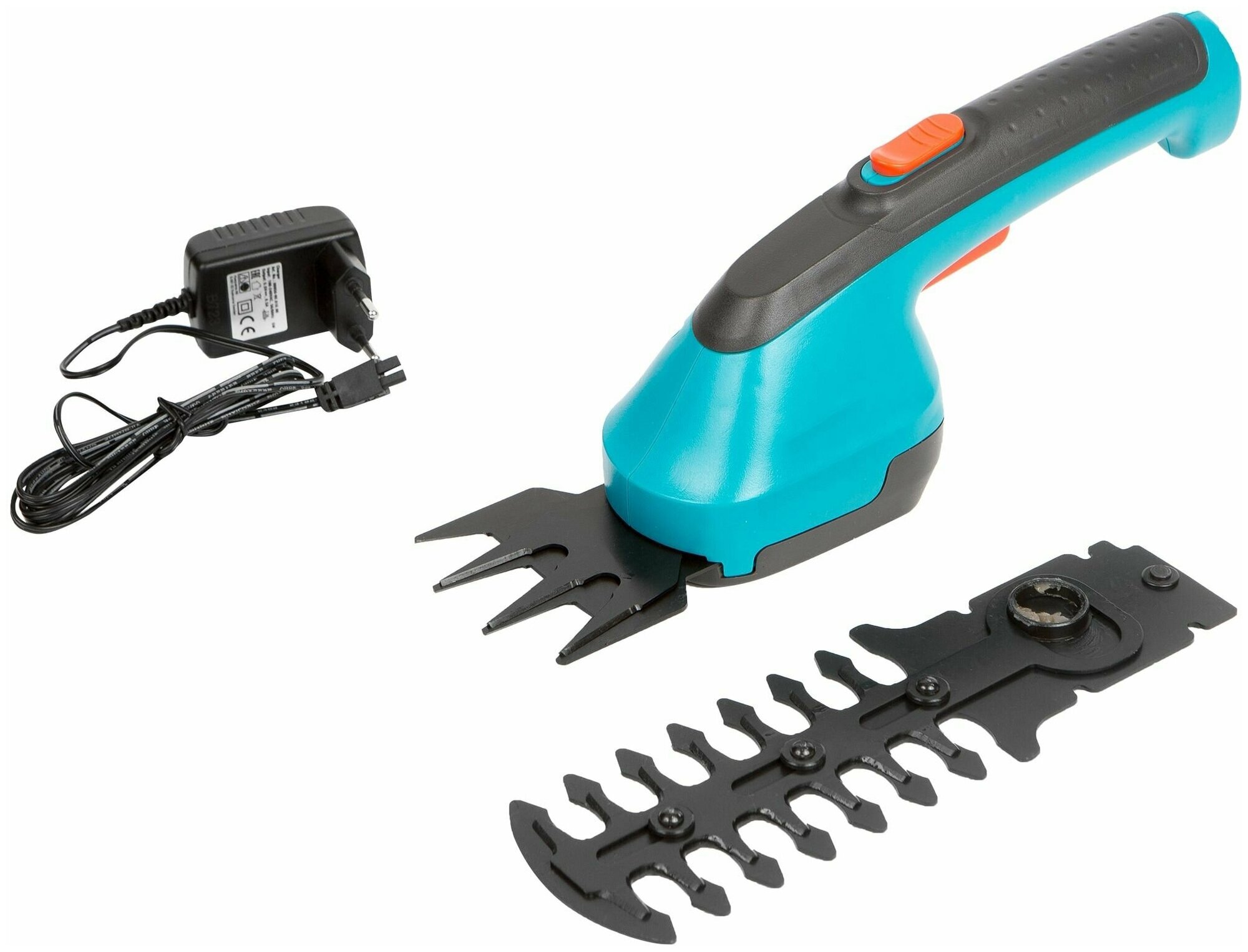 Аккумуляторный кусторез-ножницы, емкость 2500 мАч, длина лезвия 12 см, 2 насадки, поможет обработать газоны в труднодоступных местах. информация: