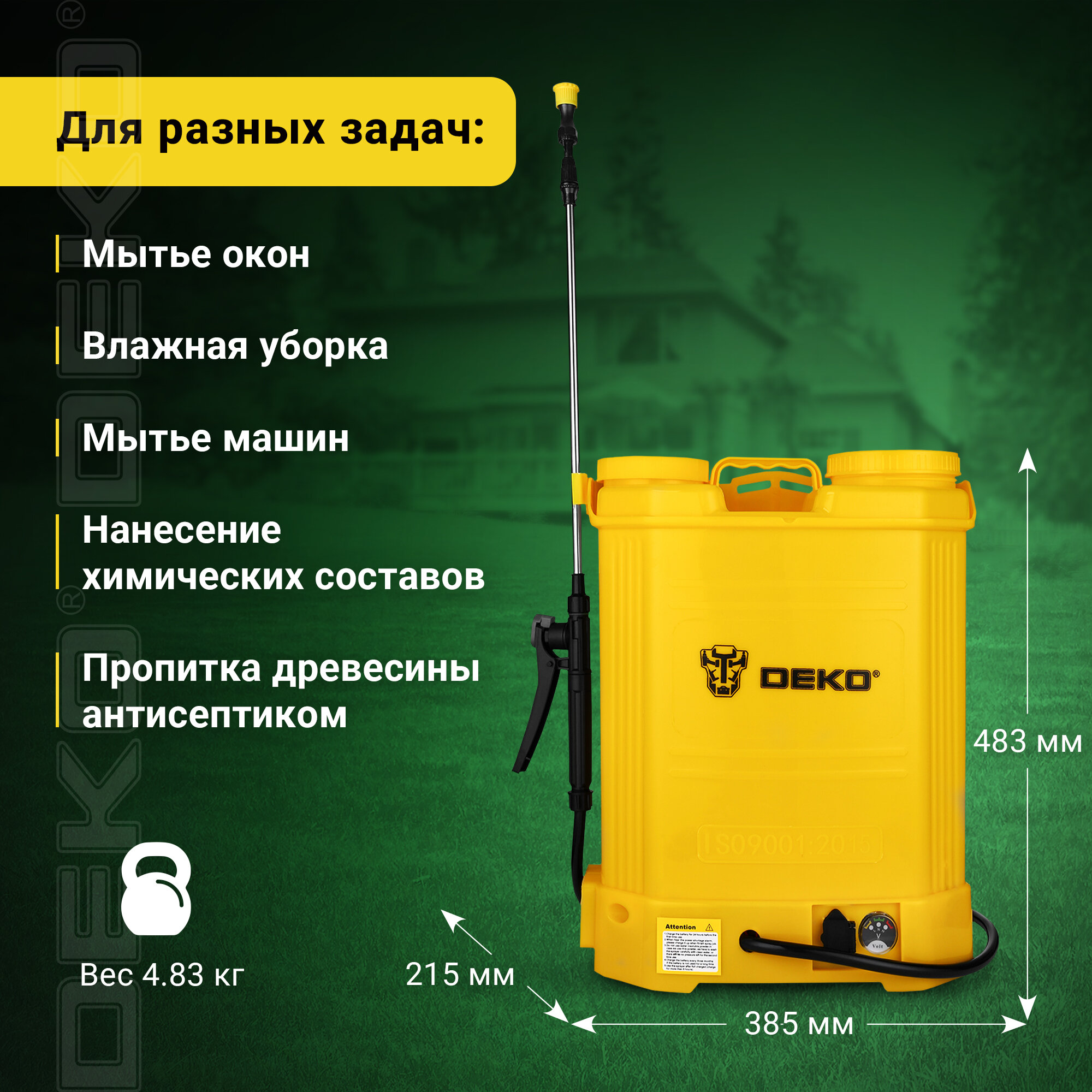 Опрыскиватель DEKO DKSP10, аккумуляторный, наплечный, 16л, желтый [065-0942]