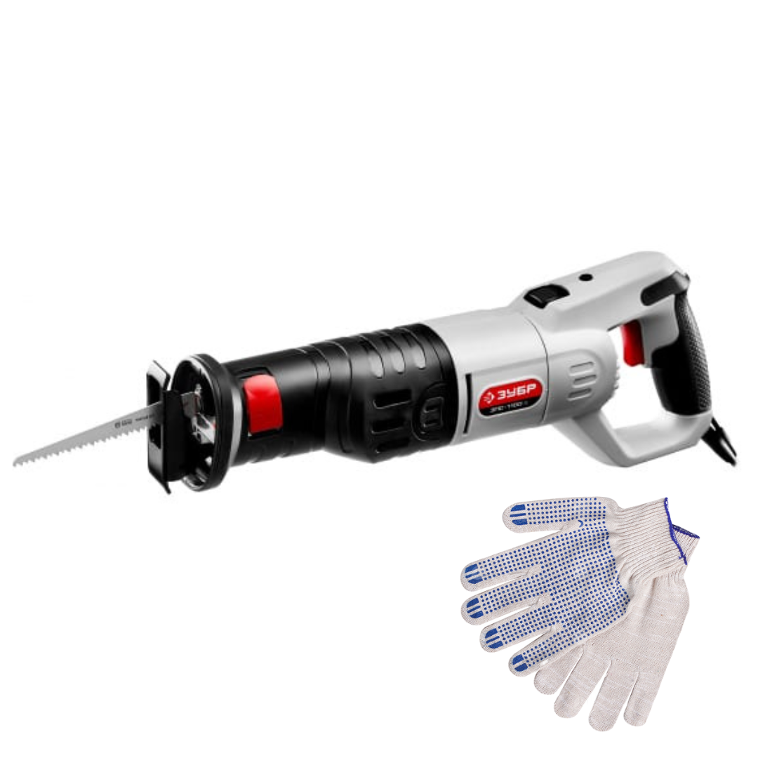 Пила сабельная (электроножовка) ЗУБР ЗПС-1100 Э + рабочие перчатки информация: