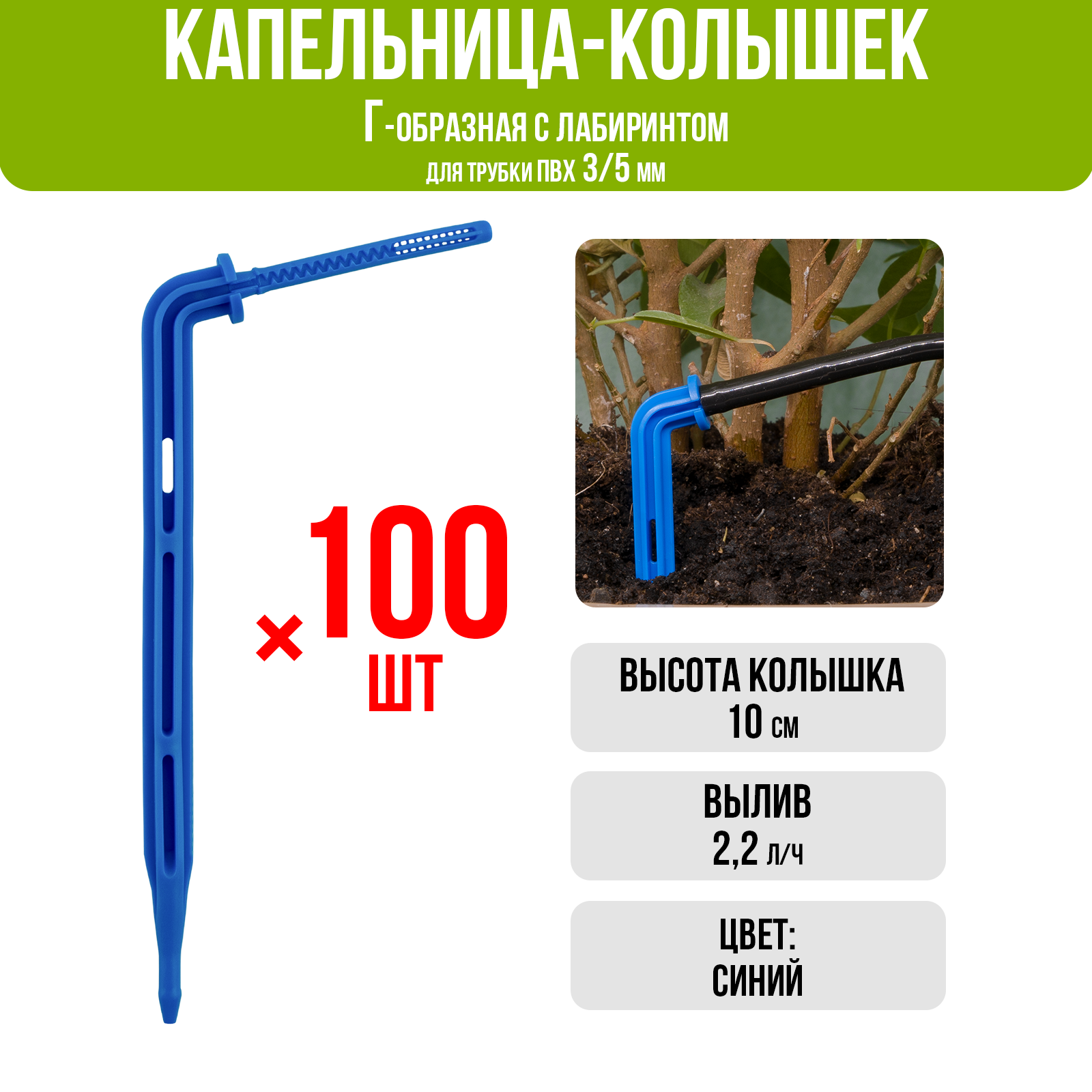 10 цен на Капельница Г-образная 10см 2,2л/ч (подключается к трубке ПВХ 3/5мм) (100шт)
