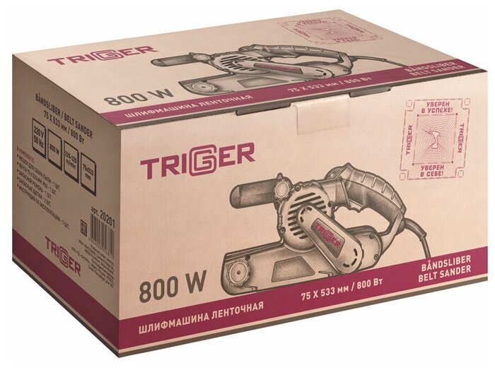 Шлифмашина ленточная Trigger 20201, рег.а скорости, 76х533 мм, 800 Вт информация: