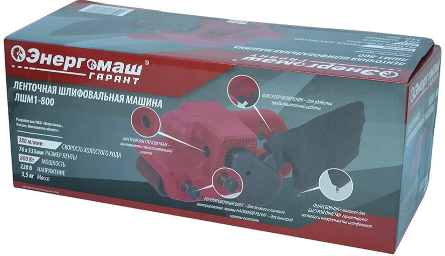 Шлифмашина ленточная Энергомаш гарант ЛШМ1-800 (800Вт, 76х533мм,)