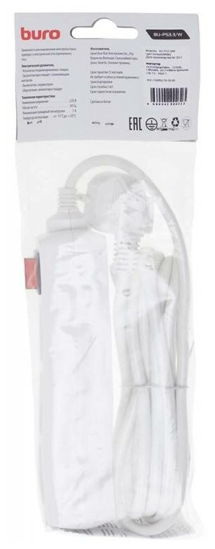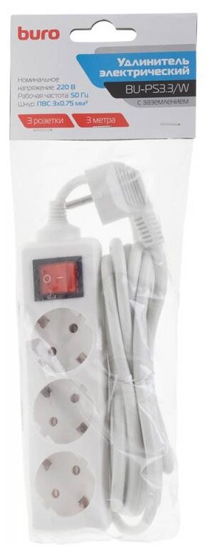 Сетевой удлинитель Buro BU-PS3.3/W 3 м 3 розетки белый информация:
