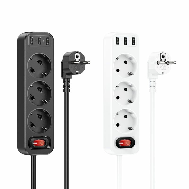 Сетевой фильтр Hoco NS2, 3 EU розетки, 4000W, с портами 3xUSB, 2.4A, 1.8м черный 2 189 ₽
