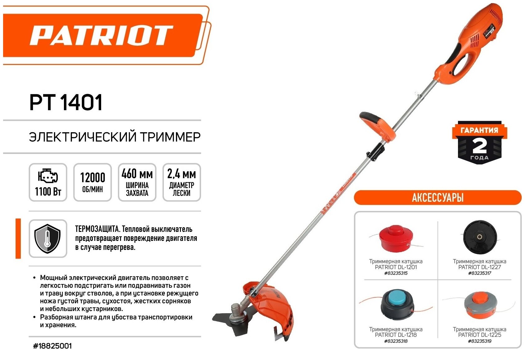Мотокоса электрическая Patriot ET1401 1100 Вт информация: