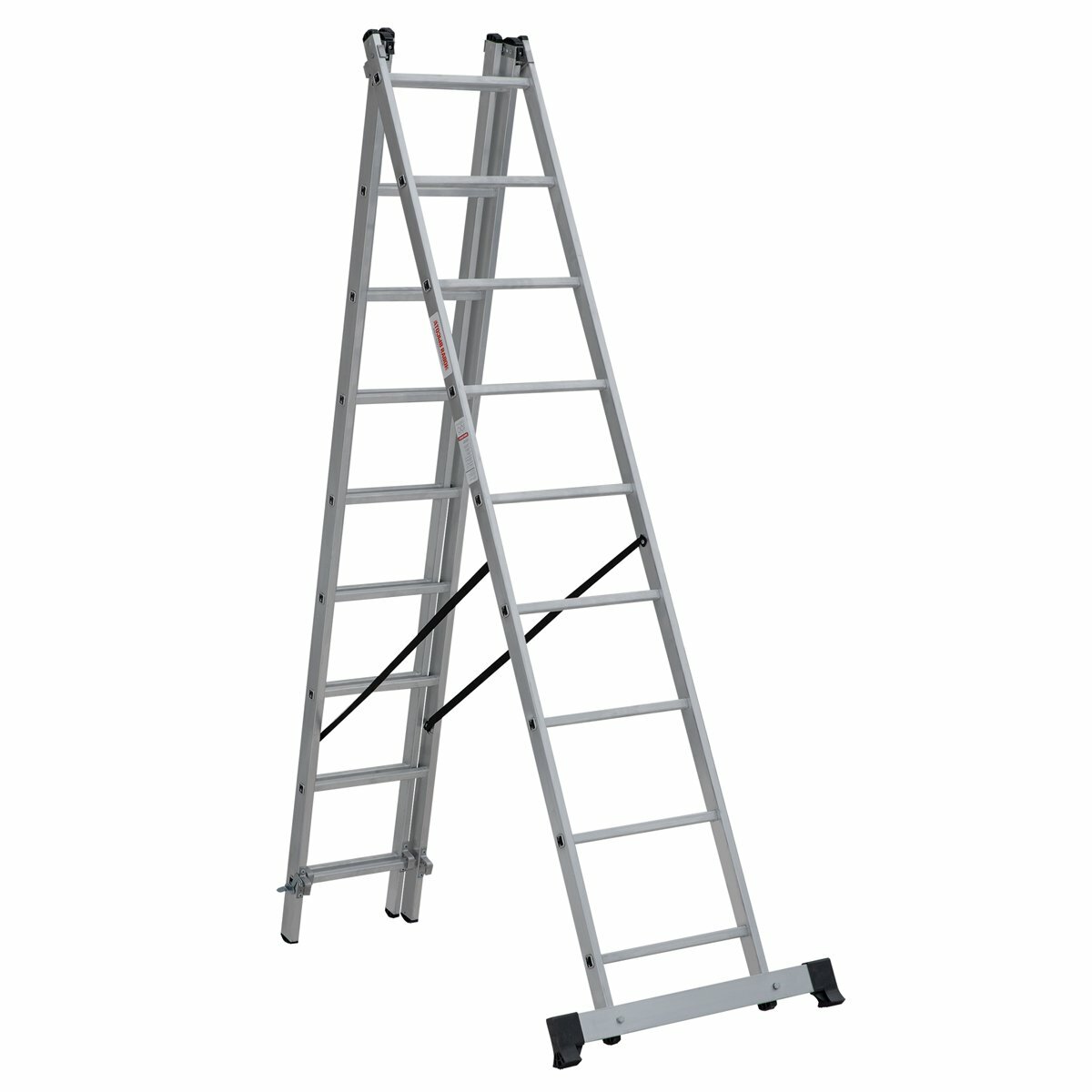 10 цен на Лестница-стремянка трехсекционная Новая высота NV 1230, алюминиевая, 3 x 9 ступеней, 2,4 - 5,52 м