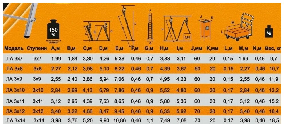 | Дополнительная информация | длина лестницы - 9,9 м, достижимая высота - 10,86 м, высота стремянки - 3,76 м, высота стремянки с выдвижной секцией - 7,08 м |