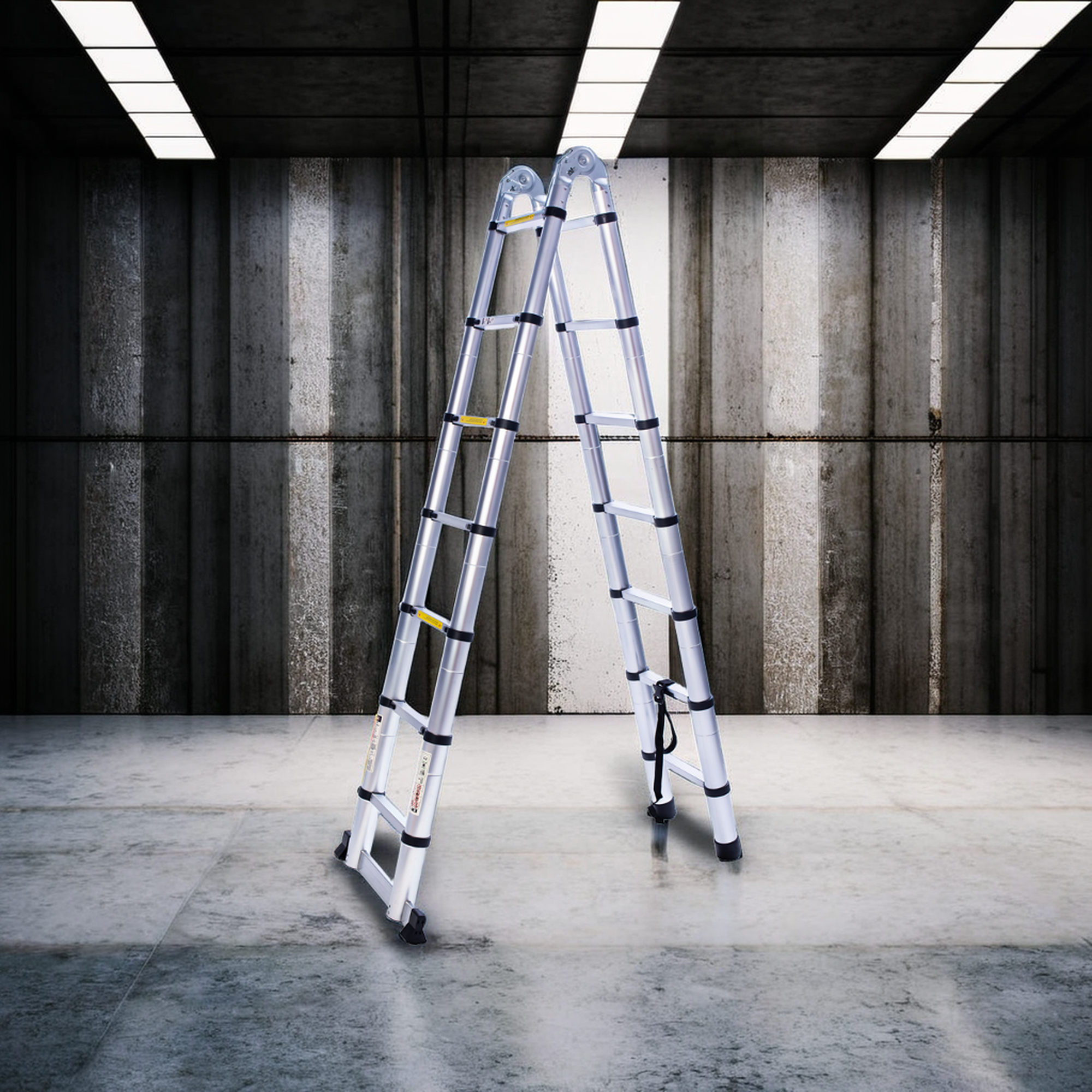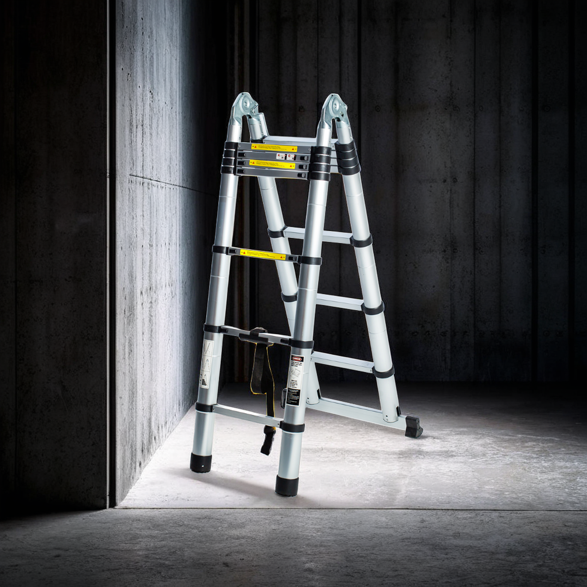 Лестница стремянка телескопическая алюминиевая 2.2/4.4 м, 14 ступеней информация: