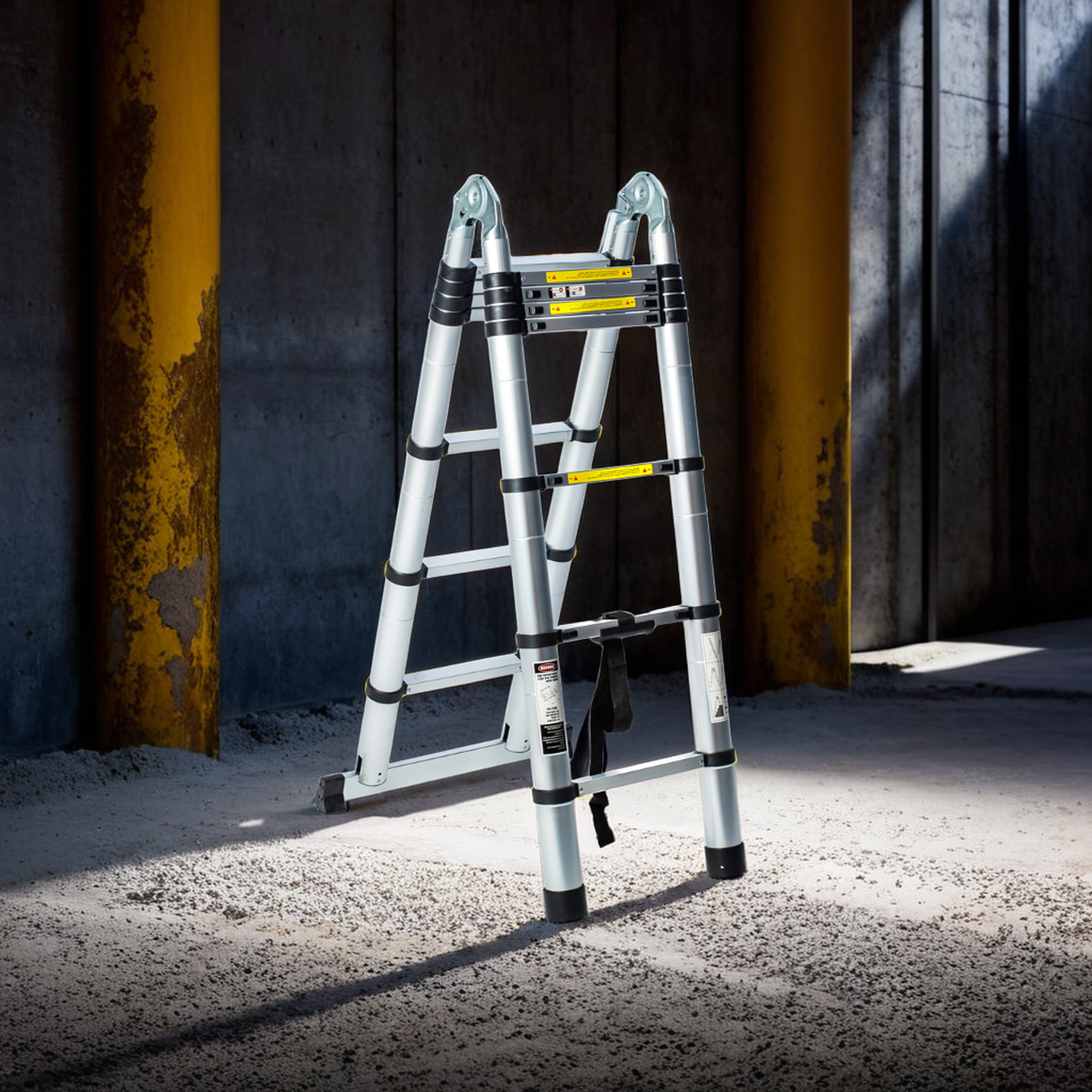 Лестница телескопическая 3,8 м 12 ступеней DG006-12/Лестница складная универсальная для дома, для дачи, для ремонта, трансформер