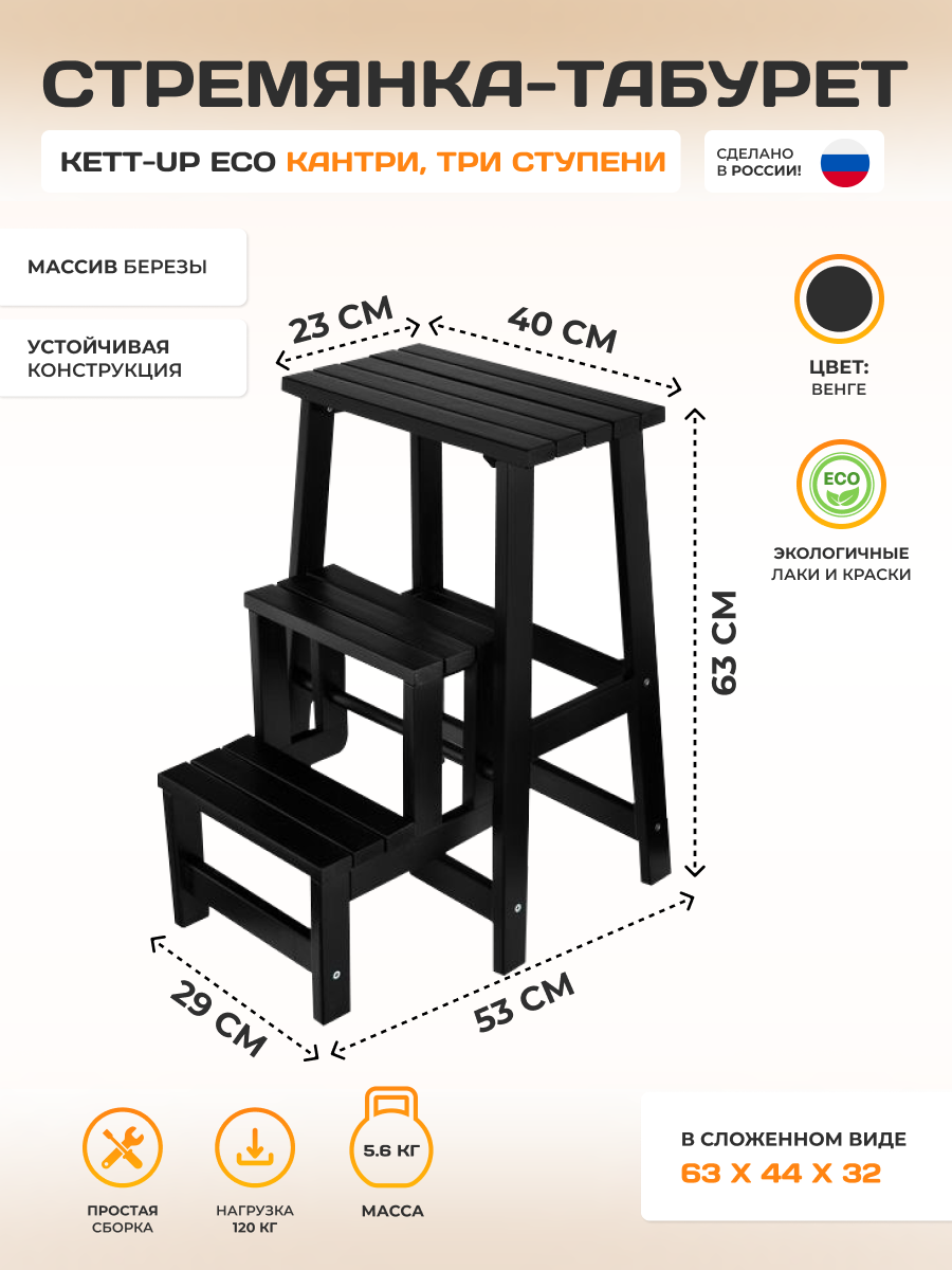 Стремянка-табурет KETT-UP ECO кантри, KU165.2, три ступени, цвет венге, 1 штука информация:
