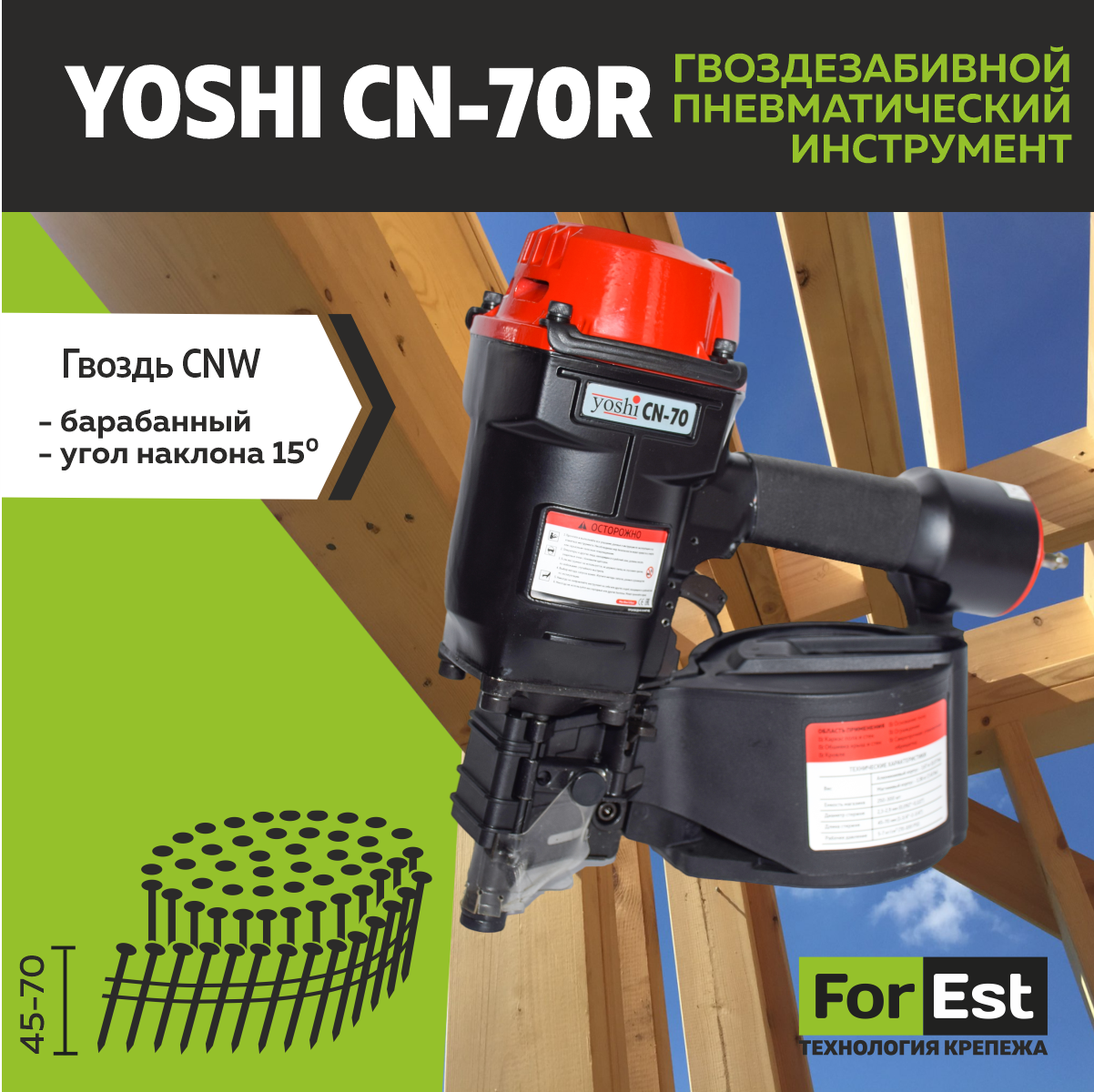 Пневмоинструмент Yoshi CN-70 R информация: