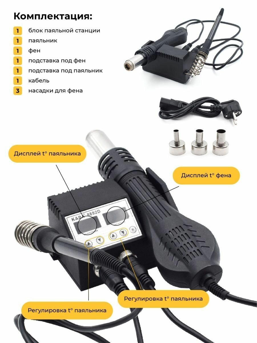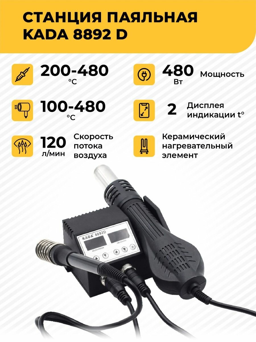 Паяльная станция KADA 8892D (фен+паяльник) (480 W/Фен - 100-480C/Паяльник - 200-480C/LCD)