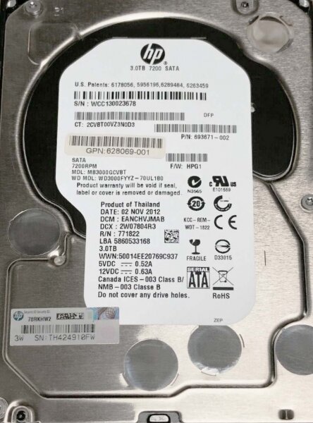 Жесткий диск HP 3TB 6G SATA 7.2k LFF MDL SC HDD [693671-002] информация: