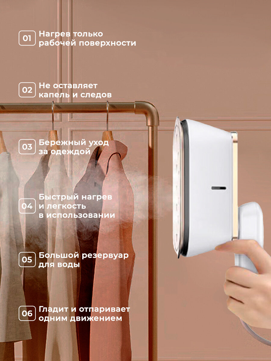 Отпариватель 2 в 1 для одежды ручной , мини, вертикальный, паровой, парогенератор для глажки, мощный, утюжок