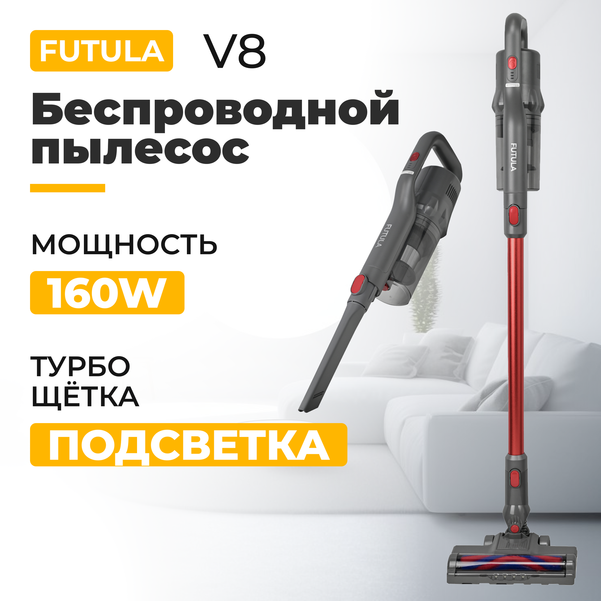 Пылесос для дома Futula V8, серый, вертикальный, аккумуляторный с Hepa фильтром 4 259 ₽