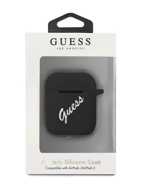 Отзывы на Guess для Airpods Silicone case Script logo with cord Black/White, шт