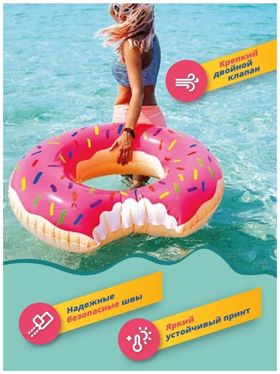 Отзывы на Пляжный надувной круг для плавания, диаметр 90 см Пончик с глазурью Розовый / Круг для плавания