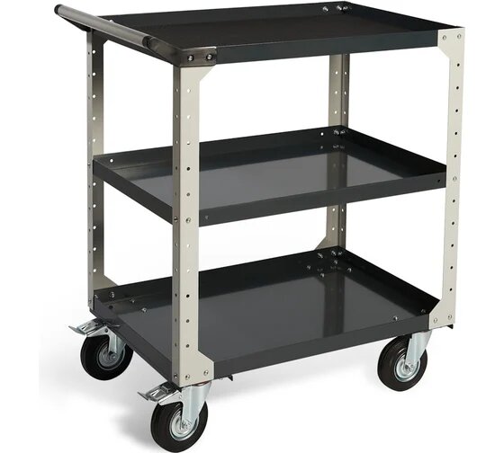Тележка инструментальная профессиональная NORDBERG T1(G) серая - 3 открытые полки, нагрузка до 60 кг на полку, 2 поворотных колеса со стопорами