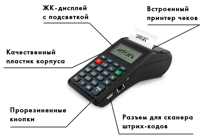| Особенности | подключение сканера штрих кода / подключение банковского терминала / подключение весов |