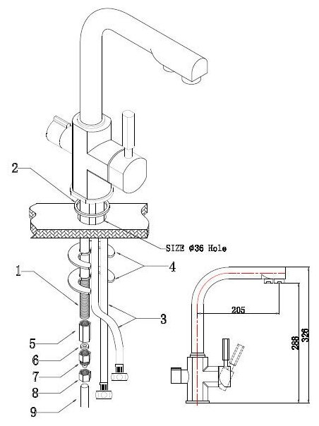 Смеситель для кухни с подключением к фильтру с питьевой водой из нержавеющей стали SUS304 Calorie CAL50116-3