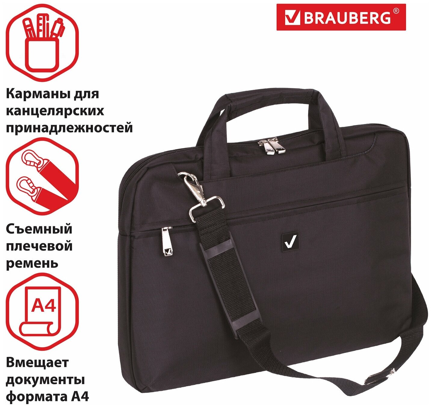 Отзывы на Сумка-портфель BRAUBERG с отделением для ноутбука 13-14", "Chance", 3 кармана, черная, 36х28х5 см, 240455, 240455
