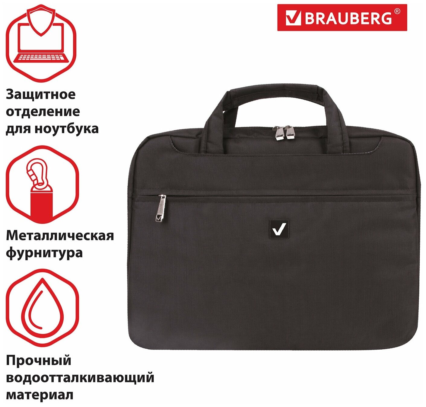 10 цен на Сумка-портфель BRAUBERG с отделением для ноутбука 13-14", "Chance", 3 кармана, черная, 36х28х5 см, 240455, 240455