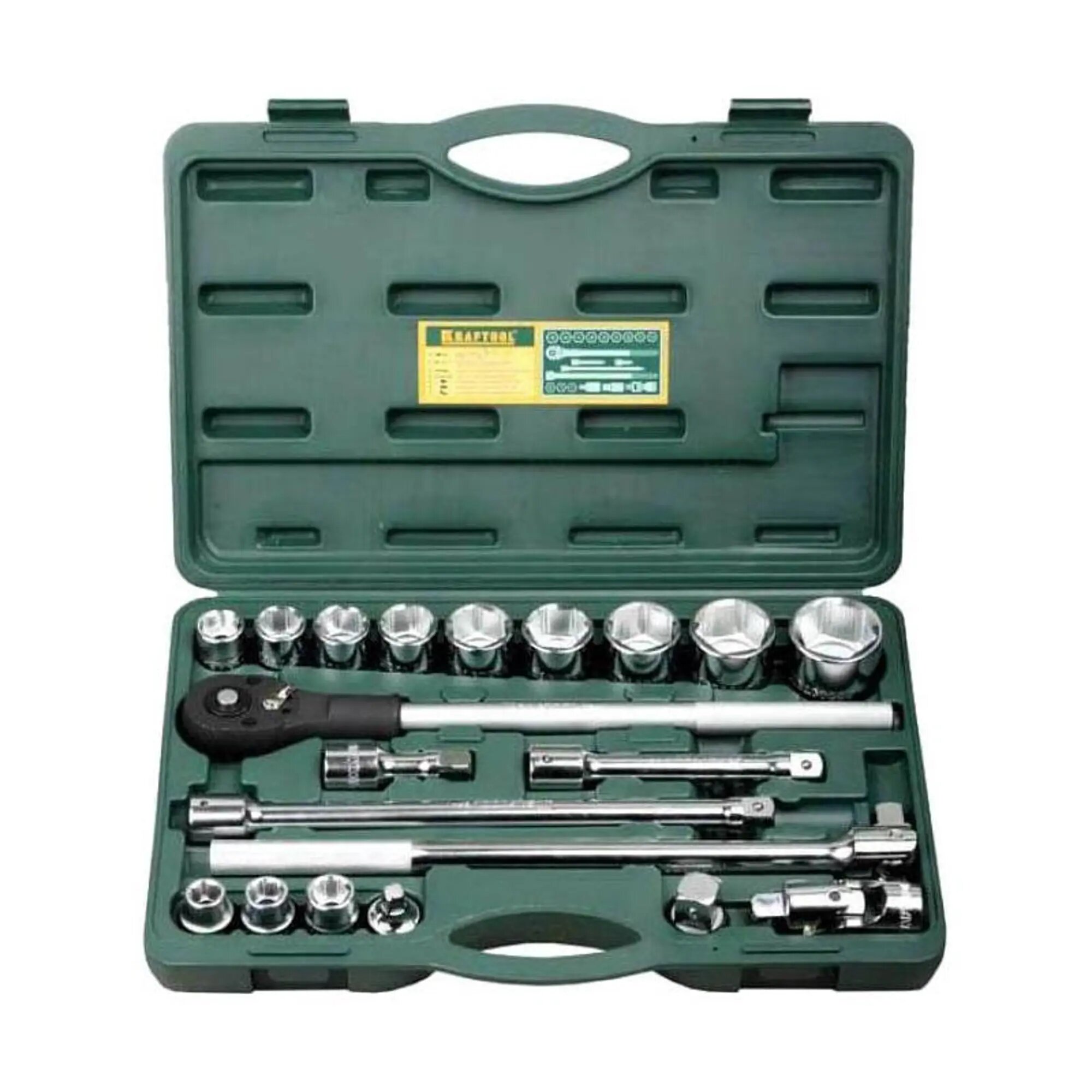Набор торцевых головок Kraftool 27895-h20_z01, 20 предметов, 17-50 мм, 3/4", CrV/S2 Kraftool 4791138 .