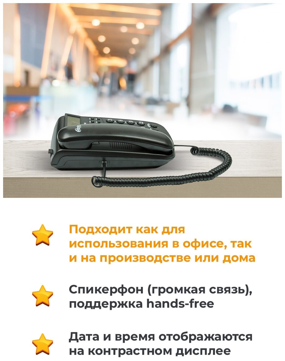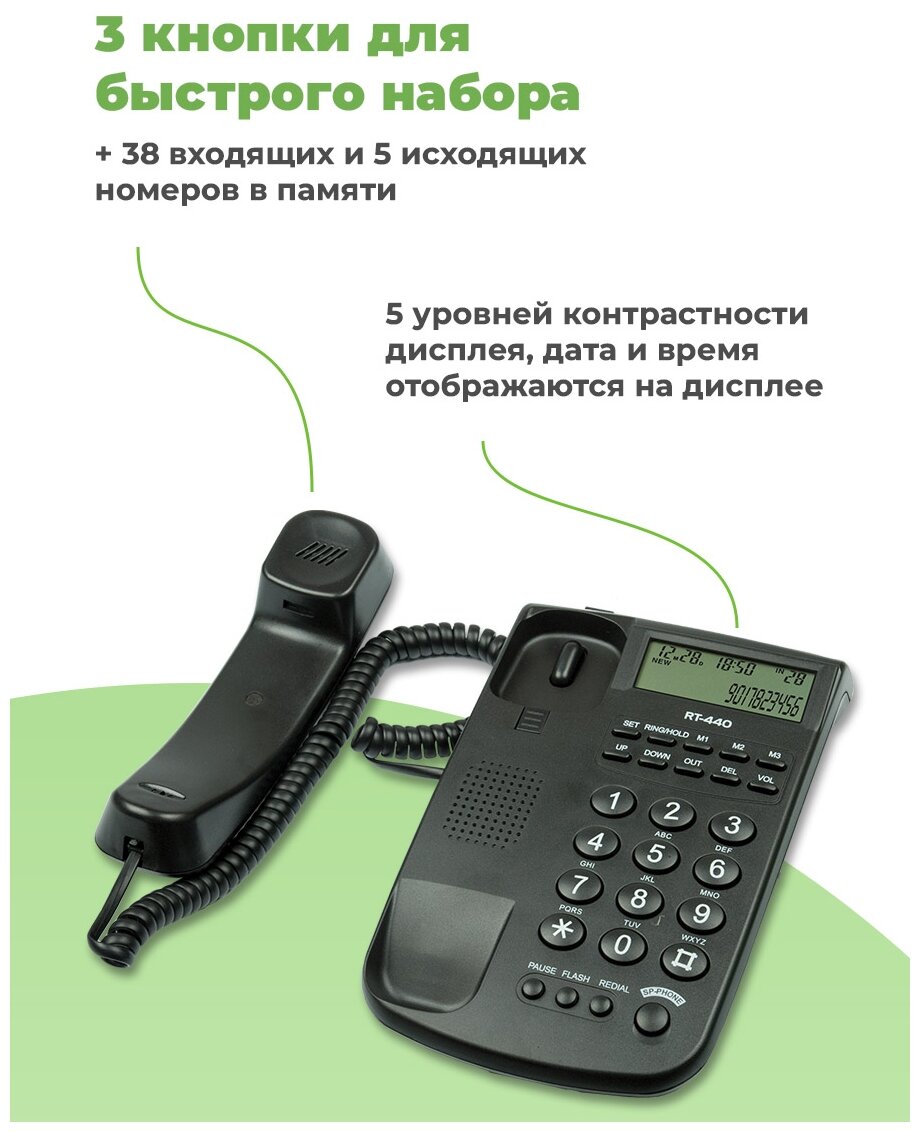 Телефон RITMIX RT-440 black, АОН, спикерфон, быстрый набор 3 номеров, автодозвон, дата, время, черный, 15118352 1 825 ₽