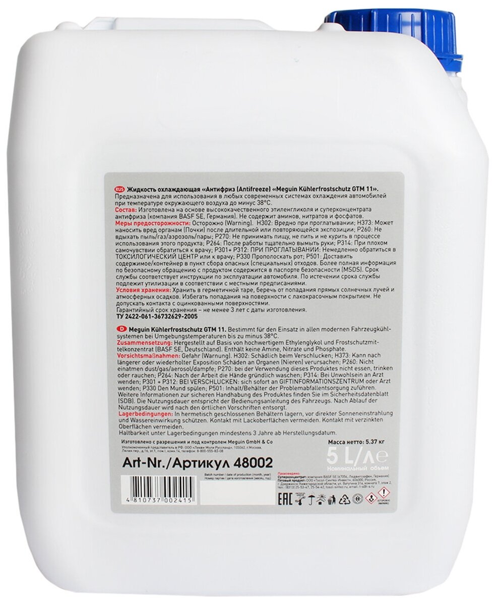 Антифриз Meguin Universal Kuhlerfrostschutz GTM 11 - 40 5 литров 48002