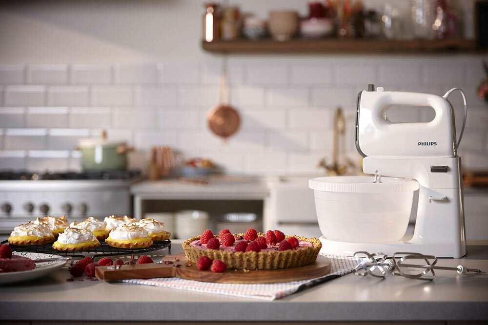 Миксер Philips/ 450 Вт, 5 скоростей + турбо режим, вращающаяся чаша, 3 л, венчики для взбивания, крюки для теста, бел