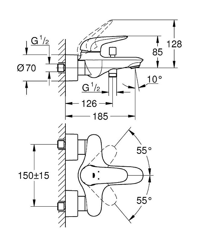 Смеситель для ванны однорычажный, хром, Grohe Eurostyle 23726003