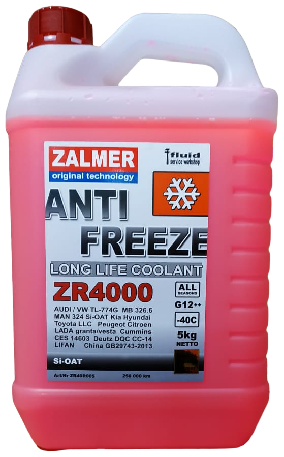 Антифриз ZALMER ZR4000 LLC G12++, красный 5 кг. / арт. ZR40R005 / бренд ZALMER