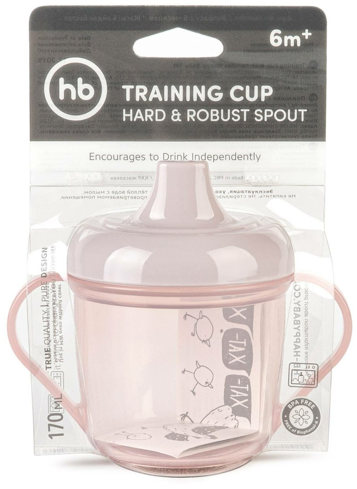 14001, Поильник детский с ручками Happy Baby, кружка поильник, 170 мл, розовый
