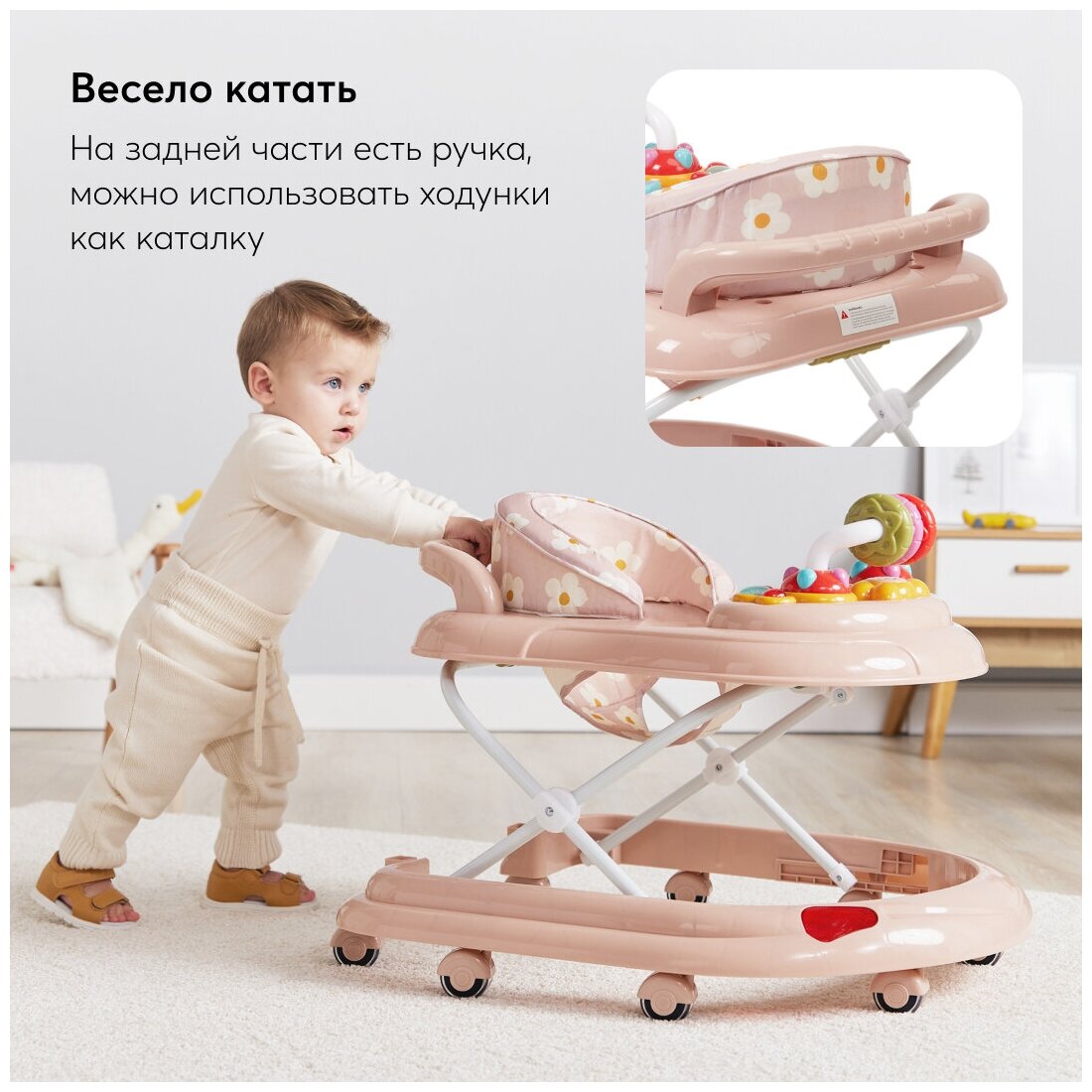 Ходунки детские Happy Baby SMILEY V2, с игровой панелью, 12 мелодий, регулировка сиденья, силиконовые колесики, pозовые информация: