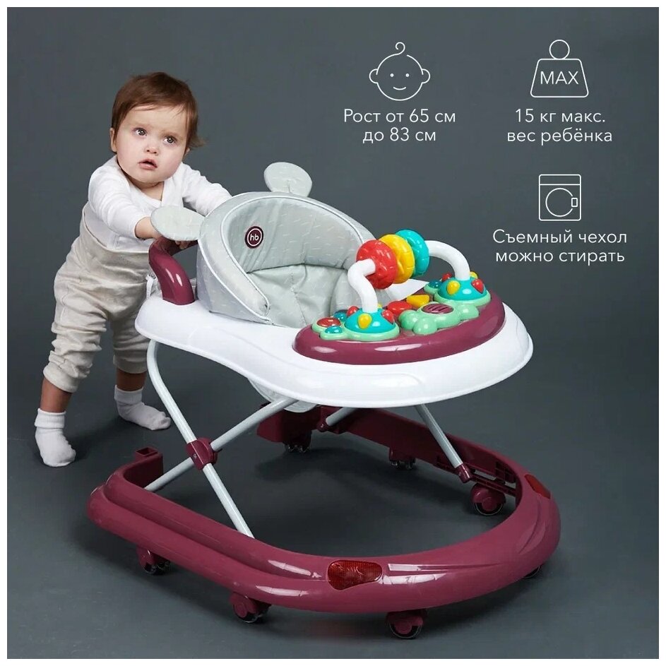 Ходунки Happy Baby Smiley V2, цвет бордовый информация: