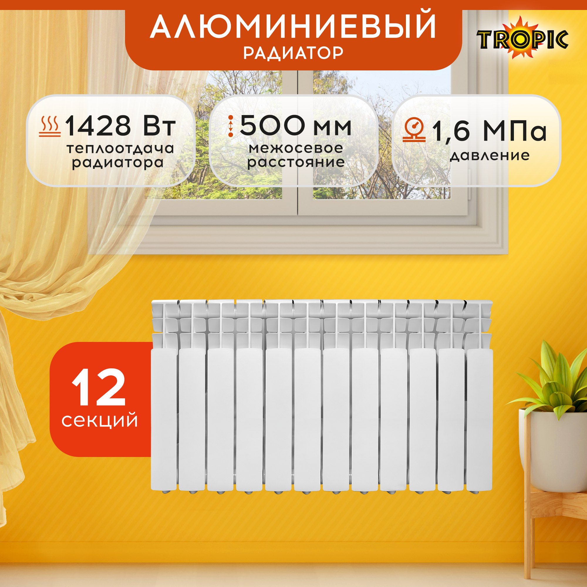 Tropic Радиатор алюминиевый Tropic, 500 x 80 мм, 12 секций информация: