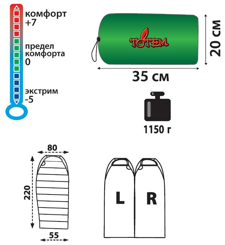 Спальный мешок Totem Спальник-кокон Hunter (TTS-004 L)