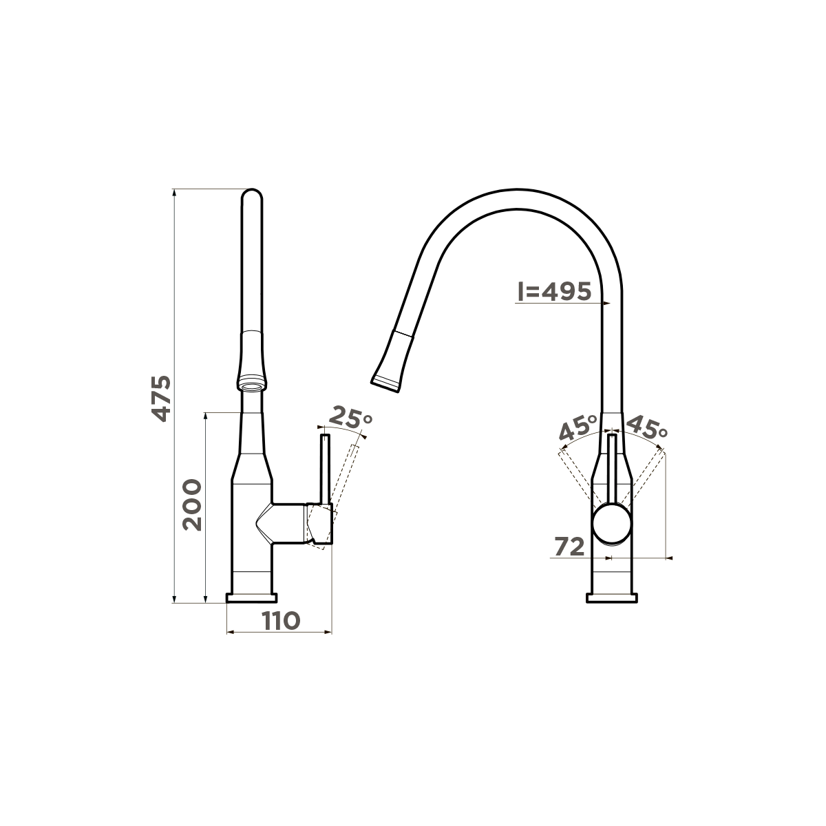 | Высота излива | 263 мм / 475 мм |